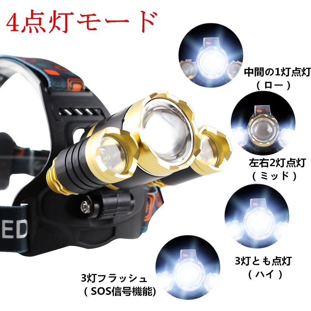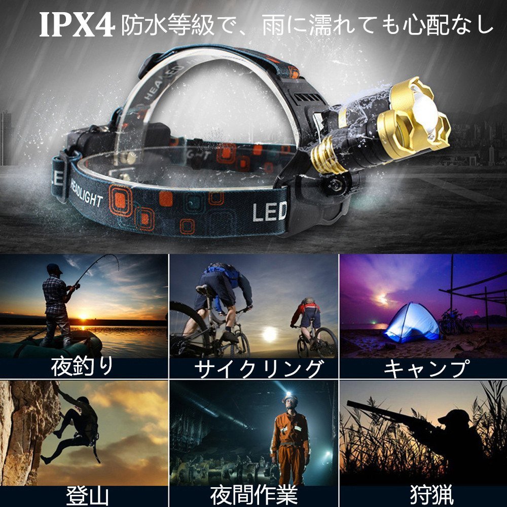Rechargeable LED headlights use 3 x CREE XML T6 LED chips and offer 3 lumens with 8000 LM high brightness.