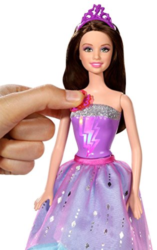 - Press the sparkling butterfly on her shoulder to hear a kiss followed by a magical gliss sound and see her glittery bodice flash with colored lightning bolts