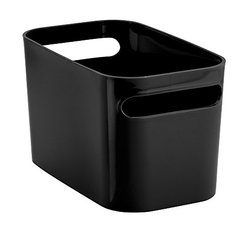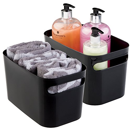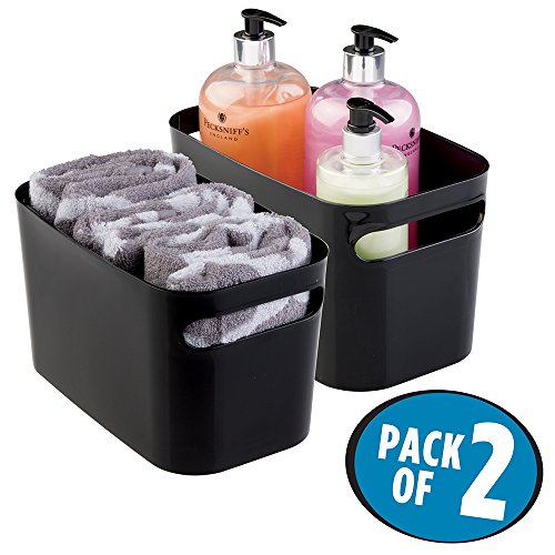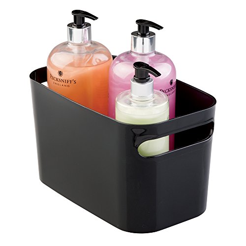 Product Description The mDesign Bathroom Vanity Bin is great for under-cabinet storage, linen closets and countertops. Organize shampoo, lotion, perfume, hand towels or other health and beauty products in this convenient bin. 0