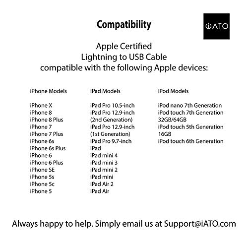 Product Dimensions:3.6 x 3.1 x 0.8 inches Item Weight:0.64 ounces Shipping Weight:0.64 ounces Manufacturer:iATO International ASIN:B018CVX2M6 Item model number:R-1M-W Customer Reviews:4.5 out of 5 stars 77 customer reviews 4.5 out of 5 stars Best Sellers Rank:#1,054 in Industrial & Scientific > Industrial Electrical > Wiring & Connecting > Cables & Interconnects > Lightning Cables #15,414 in Electronics > Accessories & Supplies > Cables Date first listed on Amazon:December 1, 2015