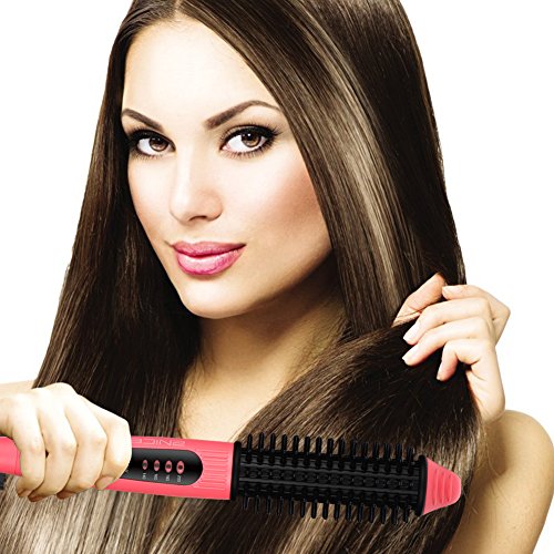 Multifunctional Ionic Styler 2 in 1: A flat iron curling iron and hot round brush in 1 tool, it's perfect for volumizing second day hair at the roots, or straightening hair and creating beach waves on the go, one button push for switching between Straightene rand Curler.