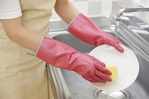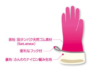 Sensitive skin-friendly rubber gloves using deproteinized natural rubber (SeLatex) which almost decomposes and removes proteins, which is considered to be one cause of rough hands.