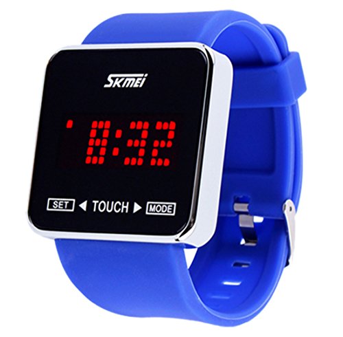 -. Feature : Classic black background simple LED digital dial display with wide elegant blue band, Minimalist and fashion, special for teenagers, students or other stylish persons,who like fashion and romantic. / Concise LED digital time display, when you want to watch the time, you need to press the button. then you can easy to read and get great night vision, convenient to check time at night, this designs to save power. Also, Remember the watch will change to sleep mode without operation to save energy while you don't watch the time. / We use the Soft and durable rubber band, bend freely, breathable and wicking,not hurt the hand, waterproof and dustproof. Make it comfortable to wear and lead you to edge sport fashion. Perfect for both indoor and outdoor activities. / Stainless Steel Double Open Buckle, use more convenient, more difficult to fall off, more fashionable appearance. Original Electronic Movement, Touch screen LED digital display, provide precise,accurate time keeping and convenient touch key to display. / Note: This tracker is life level IP66 water resistance only. No worry about sweat, rain, splash. We suggest user to take off the tracker before shower and swimming.