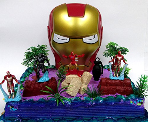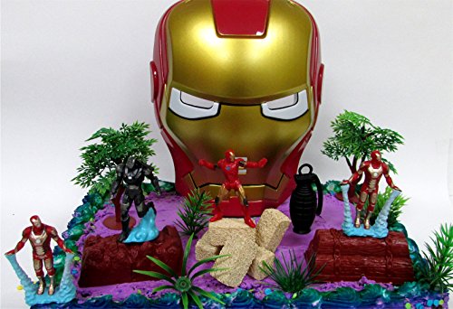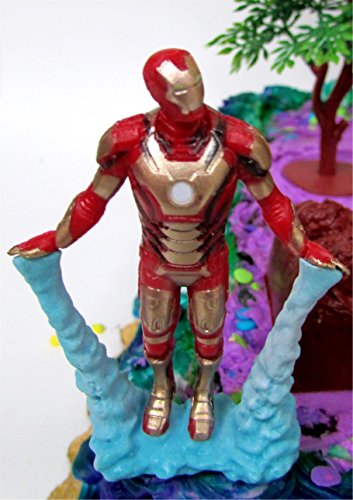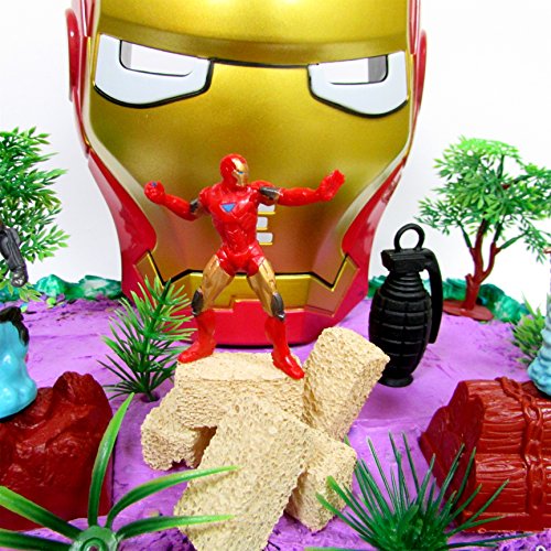 14 Piece AVENGERS IRON MAN Themed Birthday Cake Topper Set Featuring Iron Man Figures and Decorative Themed Accessories