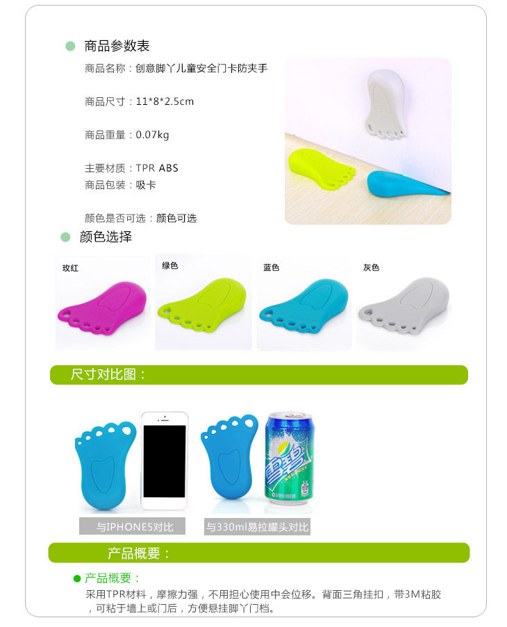 创意卡通脚丫橡胶挡门塞门阻 防风门档 儿童宝宝防夹手安全挡门卡