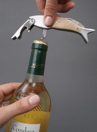 -. Title : Kikkerland Dark Wood Fish Corkscrew