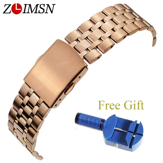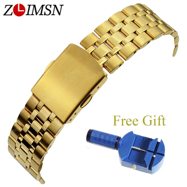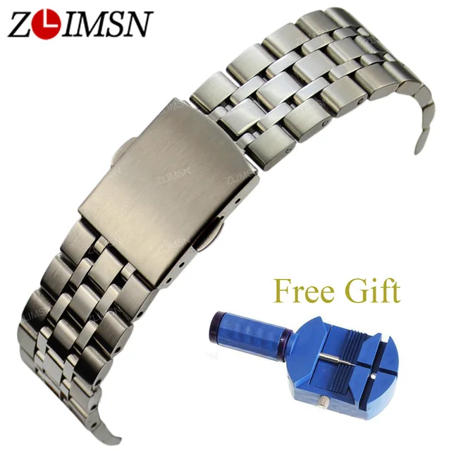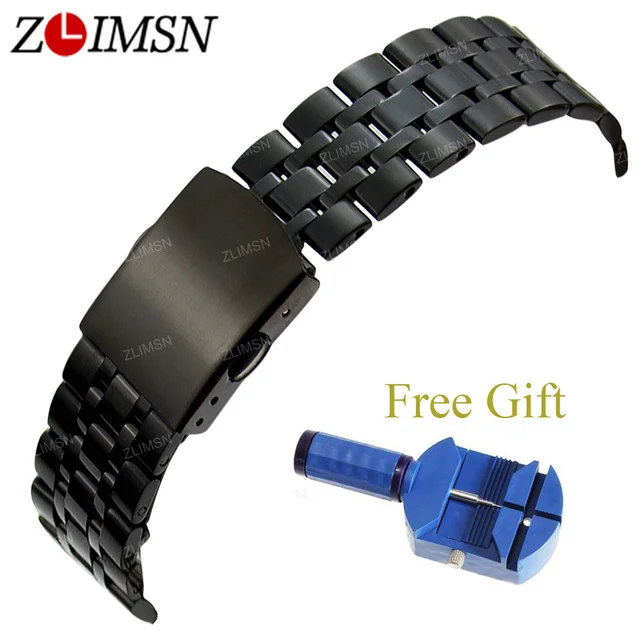 ZLIMSN 316L 스테인레스 스틸 시계 밴드 스트랩 실버 블랙 솔리드 링크 더블 푸시 버튼 디플로 버클 시계 팔찌 16 18 19 20 미리메터