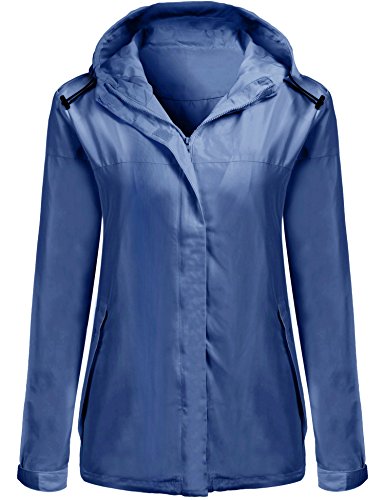 SummerRio Women's Waterproof Lightweight Rain Jacket Anorak with Detachable Hood