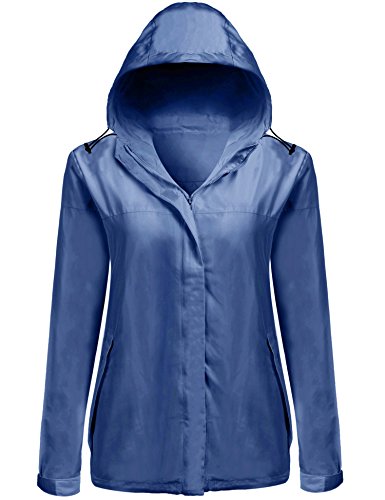 SummerRio Women Casual Hooded Long Sleeve Zip Up Rainproof Windproof Jacket Raincoats