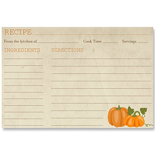Fall, Recipe Cards, Bridal Shower, Pumpkins, Autumn, Back Side Printed with Lines, Country, Wedding, Housewarming, Size 4x6, 24 Printed Recipe Cards, Pumpkin Harvest