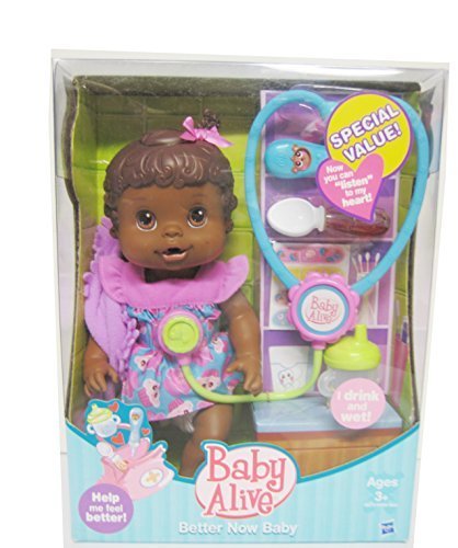 -. Feature : Play "mommy" with this amazing doll that gets "all better" with your love and care / Take care of Baby with pretend thermometer, stethoscope and medicine spoon / Keep her hydrated with "drinks" from her sippy cup and she actually "wets" her diaper, then make sure to change her wet diaper and she's ready to play again / Doll comes with shirt, "medicine" spoon, sippy cup, "thermometer," and doll diaper. / Special value pack includes "stethoscope", 4 bandage stickers and blanket.