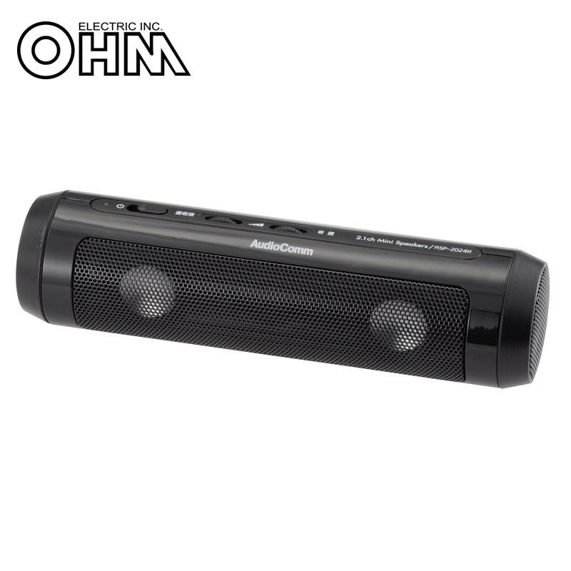 収納式接続ミニプラグでコードが絡まず便利♪音量・重低音の独立調整が可能です。 製造国:中国 ※サプライヤー直送品 ご注文後2~3営業日後の出荷となります【商品名】OHM AudioComm 2.1chチューブ型ミニスピーカー ブラック ASP-2024K-K