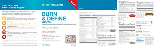 -. Binding : Health and Beauty -. Brand : GNC -. EAN : 0048107178093 -. Feature : Advanced Support As You Strive To Burn And Define. Get A Complete Solution, Including Premium, Clinically Researched Ingredients In Just The Right Doses - All In A Convenient Pack. / Multivitamin / A Premium Formula That Helps Fill In The Nutrition Gaps With Vitamins, Minerals And Key Nutrients That May Be Missing From Your Diet. -. Label : GNC -. Manufacturer : GNC -. MPN : 210811 -. PackageQuantity : 1 -. PartNumber : 210811 -. ProductGroup : Health and Beauty -. ProductTypeName : HEALTH_PERSONAL_CARE -. Publisher : GNC -. Size : 30 servings -. Studio : GNC -. Title : GNC Total Lean Burn and Define Vitapak Program -. UPC : 048107178093