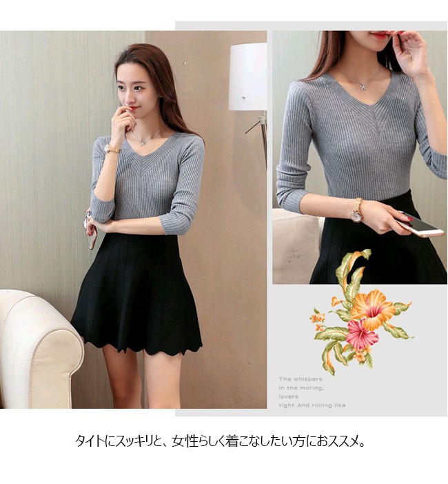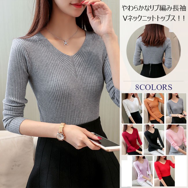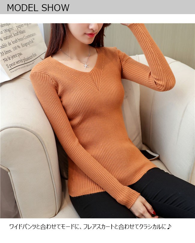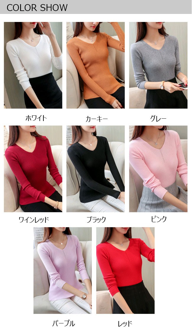 | 商品名 | ニットセーター ニットトップス インナーニット レディース 無地 Vネック 長袖 リブ編み ストレッチ ベーシック 着痩せ シンプル 2017秋冬新作 |