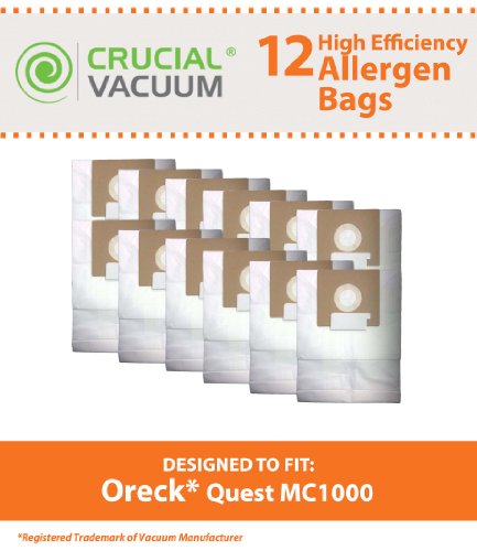 12 Allergen Filtration Vacuum Bags for Oreck Quest MC1000 Canister Vacuums; Compare to Oreck Part No. PK12MC1000; Designed & Engineered by Think Crucial