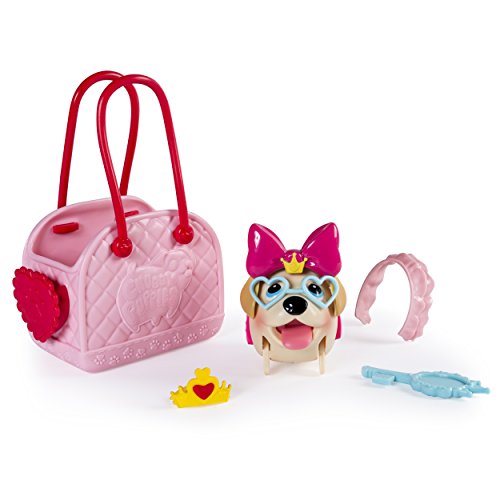 Chubby Puppies are stumbling, fumbling, tumbling cuteness you’ll fall for! Now you can dress Chubby Puppies up with their own fashion theme set. This Labrador loves to play dress up with her princess accessories! Dress her up in adorable Bow or Dress costumes. There’s even a Bow for her head with Heart Shaped Glasses attached. It’s cuteness overload! These fumbling, tumbling puppies love to run after their toys. The Labrador comes with a special Hand Mirror fashion accessory that she holds in her mouth. Give her a lift in her cute carrier or easily fit all of her accessories inside to take wherever you go! Put on a Chubby Puppies fashion show by collecting the entire line of Fashion Set Carrier Pups, including a Boxer, Tuxedo Shorthair and Rosy Satin Bunny. Bring home the undeniable cuteness of Chubby Puppies and adopt your Labrador, today!Feature