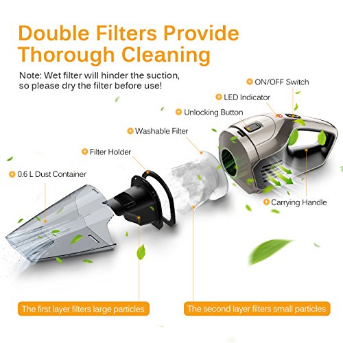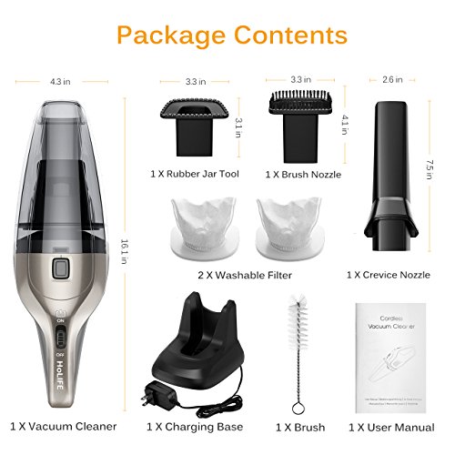 【POWERFUL & CYCLONIC SUCTION】With battery peaks at 14.8 volts and 100W motor, among the higher voltages of any handheld vacuum, Holife vac has enough suction to pick up Cheerios, road grit, and other common debris pretty quickly which makes it the strongest cleaner and the best value in its class. Please note: Turn off the machine when charging