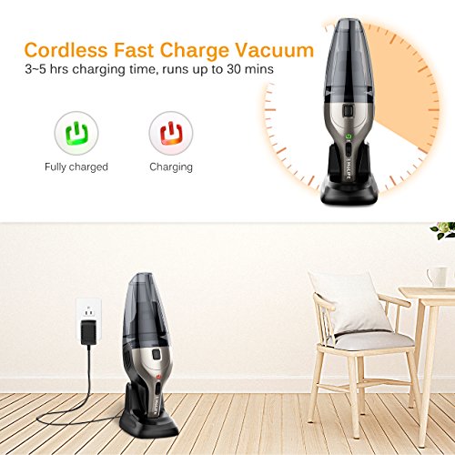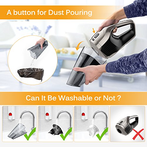 This portable vacuum cleaner boasts a compact size and a cordless design, so you can carry it around your house without any inconvenience. Easily tackle unexpected messes with this hand vacuum, perfect for small apartments, dorms and cars. And, a special designed handle fits perfectly in the palm of your hand while an easy empty dirt cup makes it even more convenient to get the job done quicker.