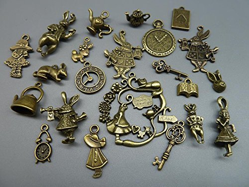 40pcs Antique Bronze Alice in Wonderland Fairy Tales Tea Party Steampunk Victorian Necklace Bracelet Charms (antique bronze)