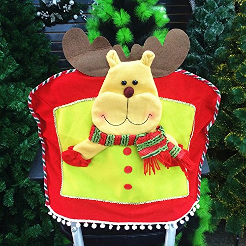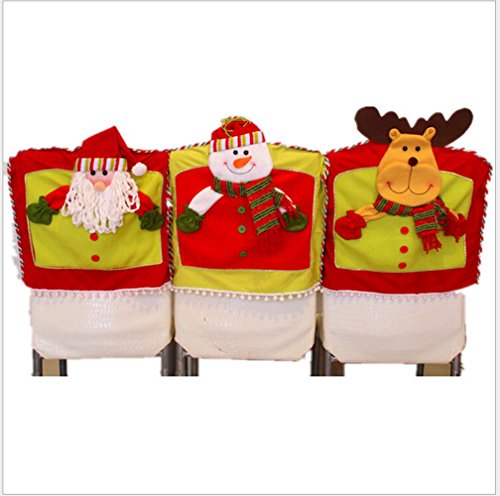 Chair Back Cover,Homecube Christmas Snowman Santa Claus and Santa Deer Chair Back Covers for Dining Room Home Holiday Party, Family Composition ,Set of 3