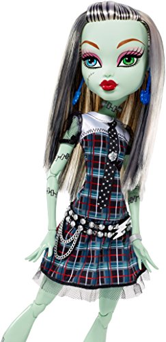 -. Binding : Toy -. Brand : Monster High -. EAN : 0887961207699 -. Feature : At 17 inches tall, this Monster High doll is larger than un-life! / Frankie Stein doll wears her signature outfit with killer details in extra-large scale! / The daughter of Frankenstein's iconic plaid dress is voltageous / Uhhh-mazing accessories include her to-die-for shoes / A doll stand is included to capture scary cool poses and monsterrific moments -. IsAdultProduct : 0 -. ItemPartNumber : DHC43 -. Label : Monster High -. Manufacturer : Monster High -. Model : DHC43 -. MPN : DHC43 -. PackageQuantity : 1 -. PartNumber : DHC43 -. ProductGroup : Toy -. ProductTypeName : TOYS_AND_GAMES -. Publisher : Monster High -. Size : 17 Large -. Studio : Monster High -. Title : Monster High 17" Large Frankie Stein Doll -. UPC : 887961207699 -. Warranty : 1 year warranty against manufacturer defects