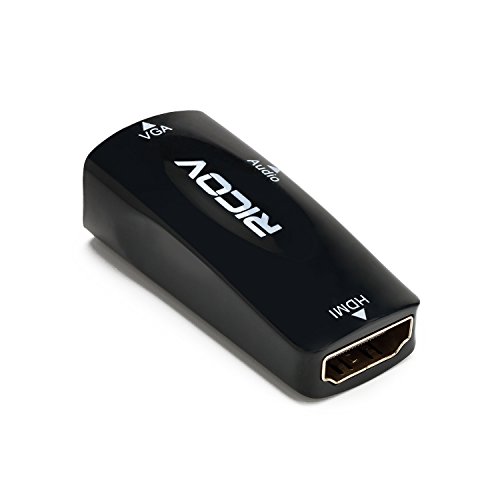 Ricov HDMI Female to VGA Female Adapter with 3.5mm Audio Port and Audio Cable - 3.3 Feet (Black)