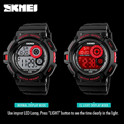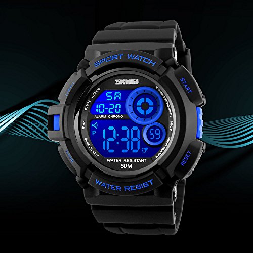 MULTI-FUNCTIONAL (WEEK DAY IS AUTOMATICALLY CALCULATED ACCORDING TO YEAR-MONTH-DATE SETTING) : Calendar Month / Day / Date, Week, Alarm, 12/24H Water Resistant, LED Display, Back Light, Shock Resistant, Stop Watch. What you waiting for? This a great value watch for Children, you don't want to miss.