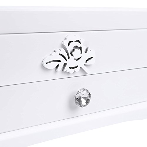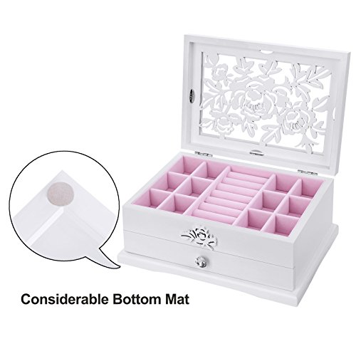 SONGMICS Girls Jewelry Box Wooden Flower Carving Organizer Storage Case 2 Tier with Drawer DIY White and Pink UJOW201