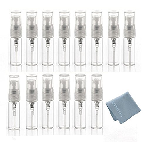 Elfenstal- 25pcs Mini Clear 3ml Atomizer Glass bottle Spray Refillable Perfume Empty Bottle Glass Clean Cloth for Travel Party Portable Makeup Tool