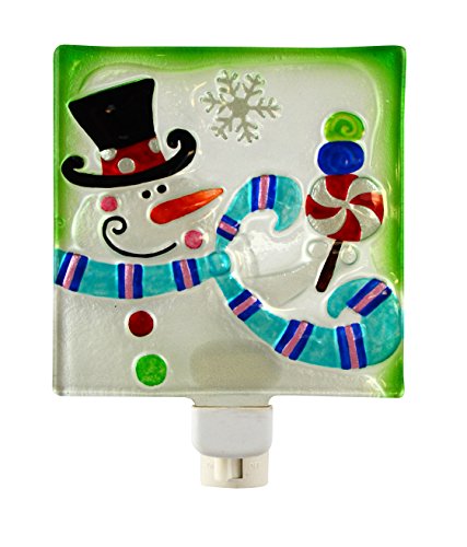 Peppermint Snowman Square 5 x 6 Inch Glass Wall Plug-In Christmas Night Light