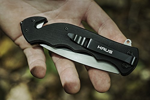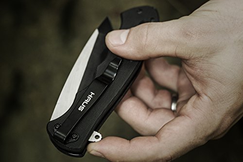 Tactical Folding Knife - HAUS Summit, EDC, Stainless & Black Blade, G10 Scale Handle, 5 Inch Folded
