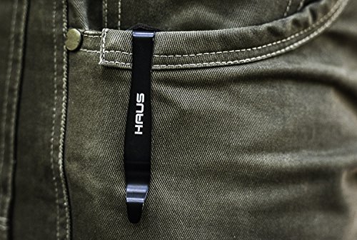 The HAUS Summit is designed to be a sleek tactical/outdoor hybrid knife. The top of the blade has a sharp edge for flint striking. This knife has a stainless steel and black, anodized, tanto blade. The blade is made of 8cr13mov steel.