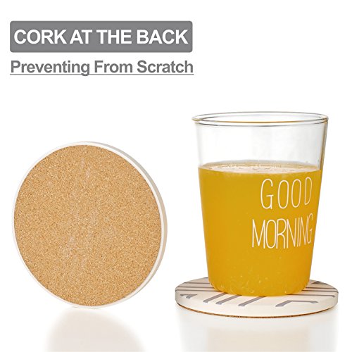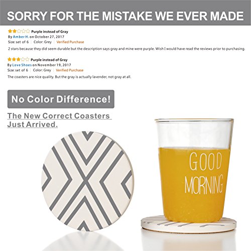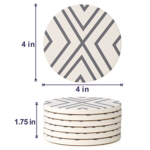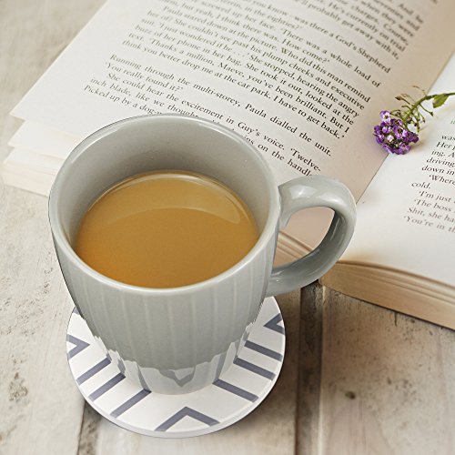 Lifver 6-Piece Absorbent Stone Coaster set, "drink" spills coasters, Grey-Lines