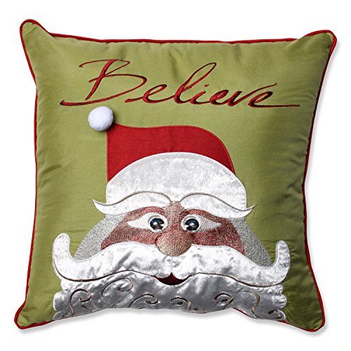 No matter what age you are, the holidays is a magical time. We set out to capture this enchantment with the creation of this holiday throw pillow. This sage green throw pillow features a detailed Santa Clause motif with satin and a pom pom accent. We finished this accent pillow with red piped trim and a solid ruby red back.