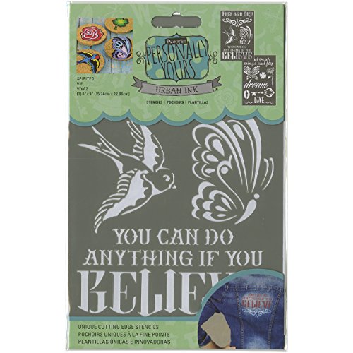 Deco Art-Urban Ink Stencil. Urban Ink is a tattoo inspired line. The fonts and design elements are edgy inspirational and fashionable and make their own statement on any craft or mixed media art project. They offer a combination of trendy tattoo design elements quotes and words. This package contains two 9x6 inch stencil sheets. Comes in a variety of designs. Each sold separately. Made in USA.Feature