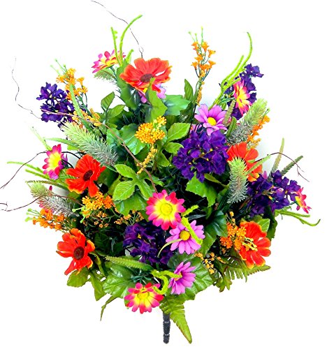 - Artificial full blooming lilac, daisy and black eyed Susan with foliage mixed flowers bush