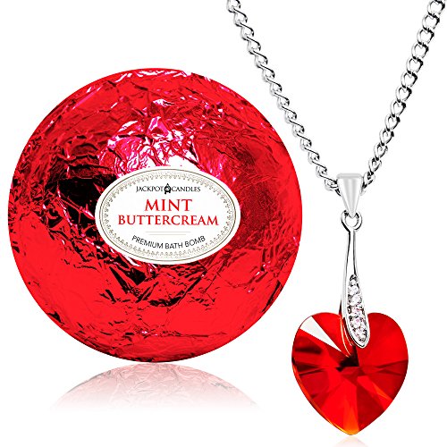 Mint Butter Cream Bath Bomb with Necklace Created with Swarovski Crystal Extra Large 10 oz. Made in USA