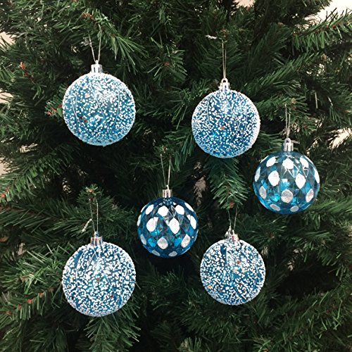 PEPPERLONELY 6PC/Pack Shatterproof Christmas Ball Ornaments 70mm (2-3/4 Inch) - Blue/White