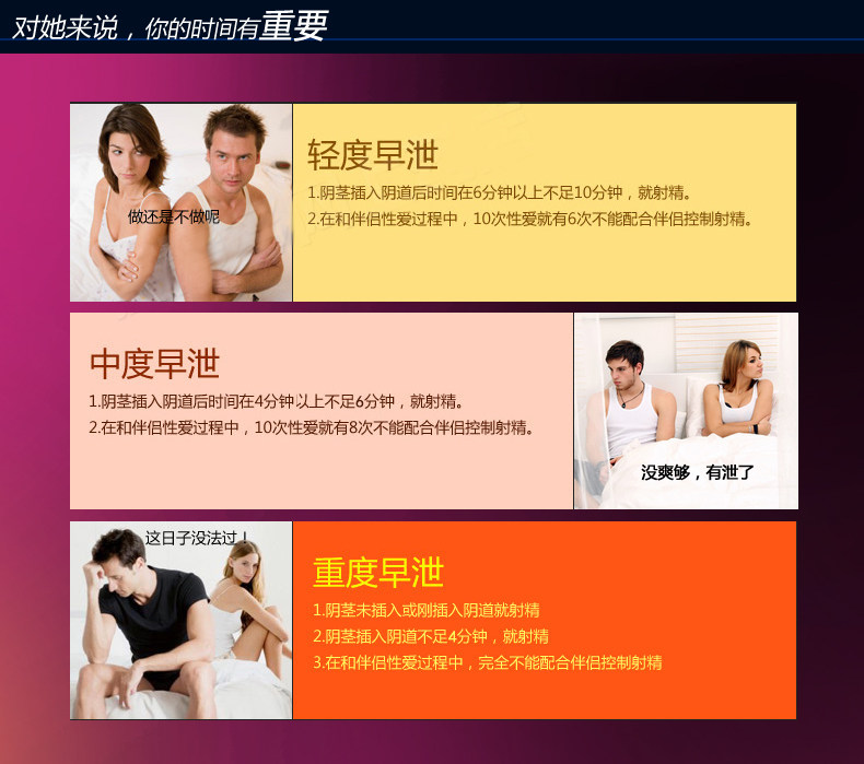 Overcome premature ejaculation or not durable, no more early ejaculation.