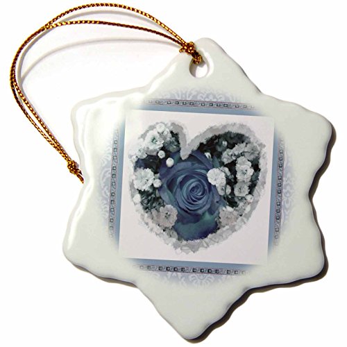 -. Title : 3dRose Jaclinart Rose Heart Garden Nature Florals Flowers Damask - Rich blue heart rose surrounded by baby blue damask and tile frames - Ornaments