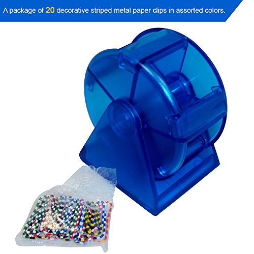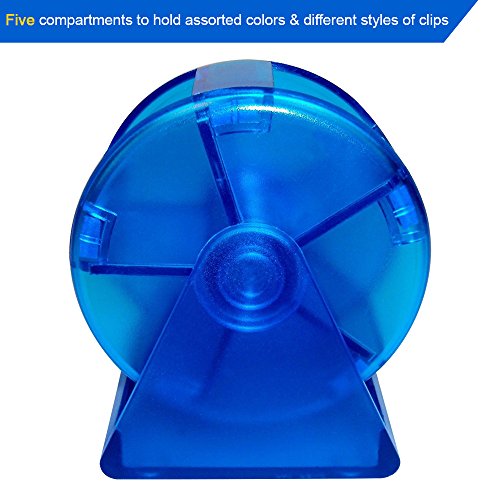 Paper Clip Dispenser - Blue Plastic Ferris Wheel, 5 Compartments with Colorful Clips, Cheap office Supply, Fun Back To School Paper Clip Holder With Zebra Paper Clips.