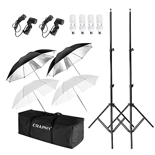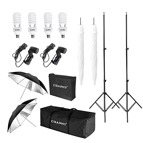Studio : CRAPHY Publisher : CRAPHY Binding : Electronics Product Description Professional Studio Lighting Kit by CRAPHY The CRAPHY Photo Studio Umbrella Lighting Kit contains translucent umbrellas that can help produce a more neutral lighting effect and reflective umbrellas for a contrast and increased highlights. The kit is easy to setup and transport, perfect for portrait, figure, product photography and videography.