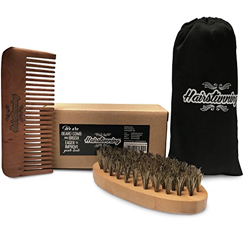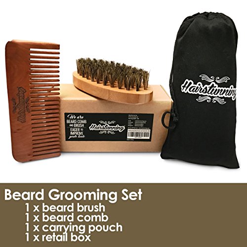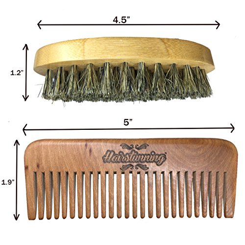 Hairstunning Boar Bristles Beard Brush and Comb Kit Perfect Mustache Grooming Set For Men With Gift Box