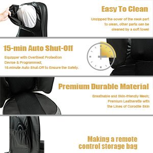 15 minutes shut off automatically to guarantee your safety. The heat function provide an overheat protection. Besides, we advise to use it where there is 105 degree between the seat cushion and the back support.
