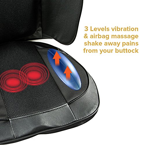 Massage Seat Pad for Waist and Bullock: Airbags massage to waist, high frequency vibration massage to hips. Come with an AC Home Power Adapter and a DC Car Adapter which connected by cigarette lighter.