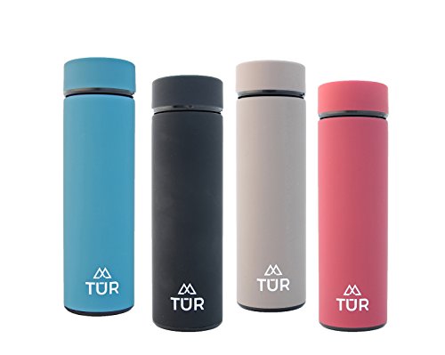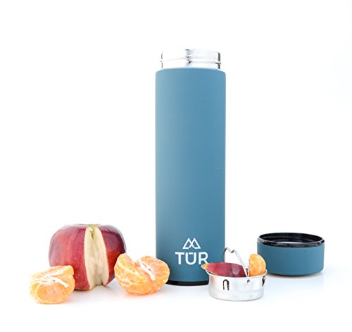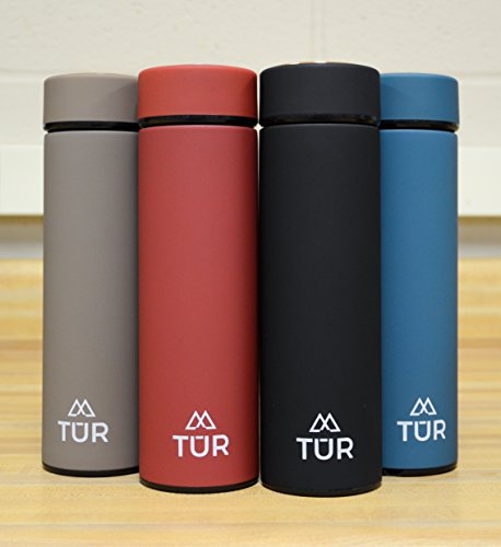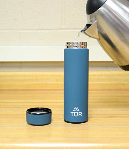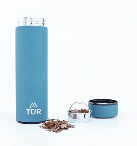 TUR Stainless Steel Double Wall Vacuum Insulated Water Bottle - 17oz - Eco-Friendly & BPA Free - Keeps Hot or Cold - Wide Mouth Thermos - TEA INFUSER - Great For SPORTS and OUTDOORS!