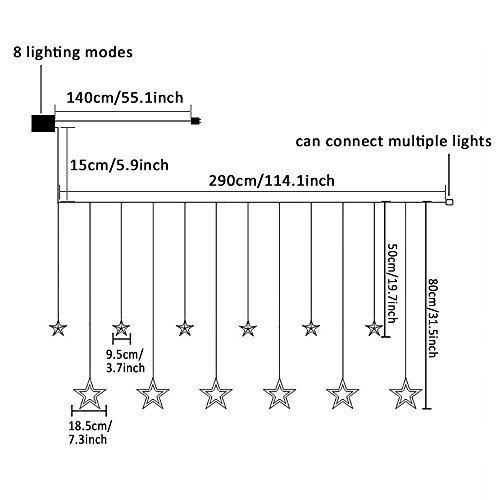 - 【LED String Light】: 12 led star lights include 138 bright bulbs, the horizontal length is 2.9M, and the upright length is 0.9M and 0.55M, perfect for creating romantic atmosphere for others.