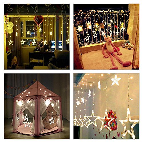 - 【138pcs Bright Bulb】: with 138pcs of lights, power by plug. The bright star string lights can be easily bent into various shapes. Great Decoration for festivals, wedding, christmas, holiday, parties, home, window, furniture and more to create a warm and romantic atmosphere.Save energy, long time to use, easy to install and safe for children.