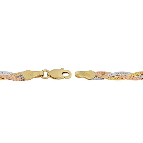 -. Binding : Jewelry -. Brand : Kooljewelry -. Department : womens -. Feature : This tri color gold bracelet makes a great gift for yourself or a loved one / Crafted in tri color gold / Comes with a comfortable lobster claw closure / Yellow, rose, and white gold -. Label : Fremada -. Manufacturer : Fremada -. Model : 10KHBBR3C-7.5 -. MPN : 10KHBBR3C-7.5 -. PartNumber : 10KHBBR3C-7.5 -. ProductGroup : Jewelry -. ProductTypeName : FASHIONNECKLACEBRACELETANKLET -. Publisher : Fremada -. Studio : Fremada -. Title : 10k Tricolor Gold 3.4mm Braided Herringbone Bracelet (7.5 inch)