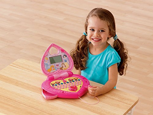 • Learning laptop has eye-catching Disney princess design and a handle for on-the-go carry; magical key unlocks the laptop and the secret pull-out drawer